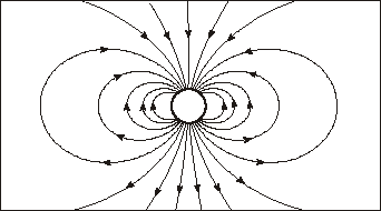 When Gauss and Weber began organizing a global magnetic survey, the Rosses and Sabine (later Sir Edward Sabine) became their leading lobbyists and supporters, and soon were the de-facto leaders of a "magnetic crusade." By 1841 much of the world-wide network was actually in operation. The British had set up stations in Greenwich, Dublin, Toronto, St. Helena, Cape of Good Hope and "Van Diemen's Land" (Tasmania), the East India Company (also British) added 4 more in India and Singapore, Russia established 10 stations in its own territory and one in Beijing, while other observatories were set up elsewhere, for a total of 53. The first world-wide survey had begun, a flood of magnetic data began arriving, and the first world-wide magnetic charts could be drawn. The new tool of spherical harmonic analysis provided the first quantitative description of the Earth's magnetic field, both its direction and strength. Since then, magnetic surveys have been carried out repeatedly [Good 1985, 1988, 1994] across land, aboard special non-magnetic ships and most recently by satellites whose orbits sweep above the entire Earth every day. These included surveys by Vanguard 3 in 1959 [Heppner, 1963], by Magsat in 1980 [Langel et al., 1985] and by a Danish satellite aptly named "Oersted", launched in 1999 [Olsen et al., 2000] , as well as by some Soviet satellites. Many scholars--most recently, Jeremy Bloxham [1992; Bloxham and Gubbins, 1989] and Andrew Jackson--also collected earlier compass observations and tried to derive from them models of the field before the era of Gauss, as well as of its slow "secular" variation. The analysis has shown, as expected, that the 2-pole ("dipole") part of the field greatly exceeded all others. In other words, the 2-pole terrella has always been a good approximation to the actual field, although--if one wants to be a stickler for accuracy--the magnetic center, the location of the dipole which fits observations best, is offset a few hundred kilometers from the Earth's center. The surprising feature is that since the time of Gauss, the strength of this "dipole" component has steadily declined by about 5% per century, the decline accelerating somewhat after 1970. Even though the measured strength of the magnetic field is decreasing, it would be more accurate to say that it is becoming more complex, rather than weaker. As the dipole part of the field is weakening, the more complex parts (4-pole etc.) are gaining strength. In other words--as the strength of the field associated with the largest spatial scale (dipole) decreases, that associated with smaller scales increases. If all the Earth's magnetism comes from its liquid core (whose radius, about half the Earth's, is known from seismology), the non-dipole components of the field are much stronger there, because they diminish much faster with distance R, like higher powers of R. Theory suggests that the total magnetic energy cannot easily change as quickly as the observed changes in the field. Calculations indeed confirm that the sum-total of that energy has changed very little--just that the complicated parts have grown at the expense of the dipole, and since those decrease faster with distance, the field at the surface has weakened too. So--if we wait 1500-2000 years, is it possible that the dipole part will become very small, while the overall structure of the field becomes complex, with perhaps more than one pair of magnetic poles? And could it be that 2000 years after that, the dipole part will have continued to grow in the opposite direction, until it again dominated the global structure of the magnetic field, the way it does now--but with opposite polarity? The geomagnetic record suggests this is not likely to happen, and that the trend will probably change. However, it also tells us (as discussed in a later section) that the above scenario cannot be ruled out, and that such reversals have apparently happened many times during the Earth's magnetic past. 10. Faraday's Lines of Force (field lines) Gauss avoided speculating on the source of the Earth's magnetism. Just measuring it accurately was challenging enough--and in the process, proving that it originated inside the Earth, not outside it. The first steps towards understanding that source were made by a slightly younger contemporary, Michael Faraday [Williams, 1965; Segré, 1984]. Faraday (1791-1867) was the son of an English blacksmith, apprenticed by his parents to a bookbinder. Faraday took advantage of his job to read books brought to the bindery, among them a volume of the Encyclopaedia Britannica with an article about electricity. Science aroused his interest and as a young man he attended free scientific lecturers by Humphry Davy, Britain's leading chemist [Knight, 2000], taking careful notes of what he heard. When Davy dismissed his assistant for brawling and advertised for a replacement, Faraday applied, sending his notes as proof of his interest--and ended up with the job. Starting as little more than Davy's servant, Faraday rose to make a name for himself in the study of chemistry and magnetism, discovering (for instance) the basic laws of electrolysis. What he lacked in formal schooling and mathematical analysis he made up in intuition and insight. He had a remarkable talent of expressing complicated scientific ideas in simple words, and was noted for his lucid lectures and writings. One notable contribution was a simple way of visualizing the magnetic force. When Gilbert explored the "orb of virtue" around his terrella, the region where magnetic forces could be sensed, he found that at every point in space, the force on his magnetic needle (including the downward dip) had a certain direction. Faraday made visible the overall pattern of those directions, by connecting them with continuous lines.
