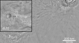 ![]() (A) Daedalia Planum Context, Arsia Mons in upper right.