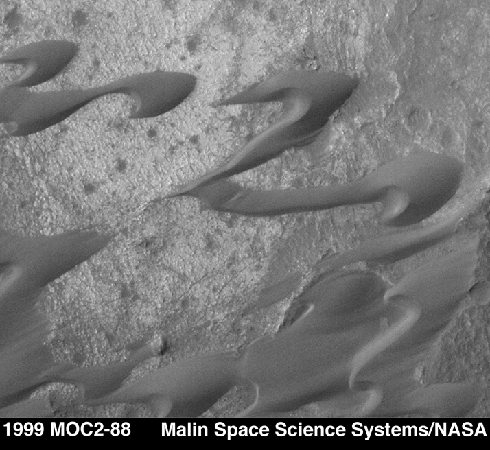 region of Syrtis Major. The shapes of these dunes indicate that wind has