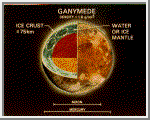 Ganymede. The cut-out reveals the interior structure of this icy moon.
