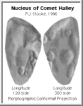 Halley encounter on March 13, 1986. The nucleus dimensions are about 16 by 8 by 8