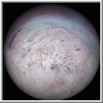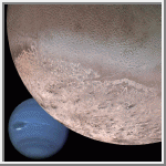 large satellite Triton during its close flyby on Aug. 25, 1989.