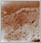 icy surface. A conspicuous set of grooves and ridges cuts across the