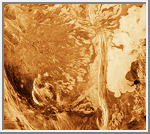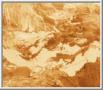 Volcanic plains typically cover large lowland areas separated by mountains or ridge belts; they extend over 85% of the planetary surface. The plains range in elevation from about 1.5 kilometers (.9 miles) below to 2 kilometers (1.2 miles) above the mean planetary radius of 6,051 kilometers (3,761 miles) [Guest et al., 1992]. They consist of extensive sheets of flood lavas hundreds of kilometers in width and mostly 100 to 700 kilometers (62 to 430 miles) in length. Some plain regions are bright in radar images, but most are dark, indicating a smooth surface.