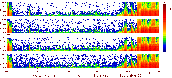 - Auroral oval crossing in postmidnight-morning sector. In the middle - plasma sheet protons, at the sides - ring current protons. The five panels - count rates at different directions to the satellite rotation axis.