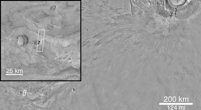 ![]() (A) Daedalia Planum Context, Arsia Mons in upper right.