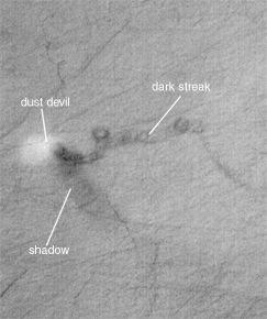 These pictures are released in conjunction with the 31st Lunar and Planetary Science Conference, being held in Houston, Texas, the week of March 13-17, 2000. These dust devils and streaks are the subject of an oral presentation on the afternoon of March 16, 2000. To view a PDF copy of the abstract, CLICK HERE and note that it is ©2000 Lunar and Planetary Institute.